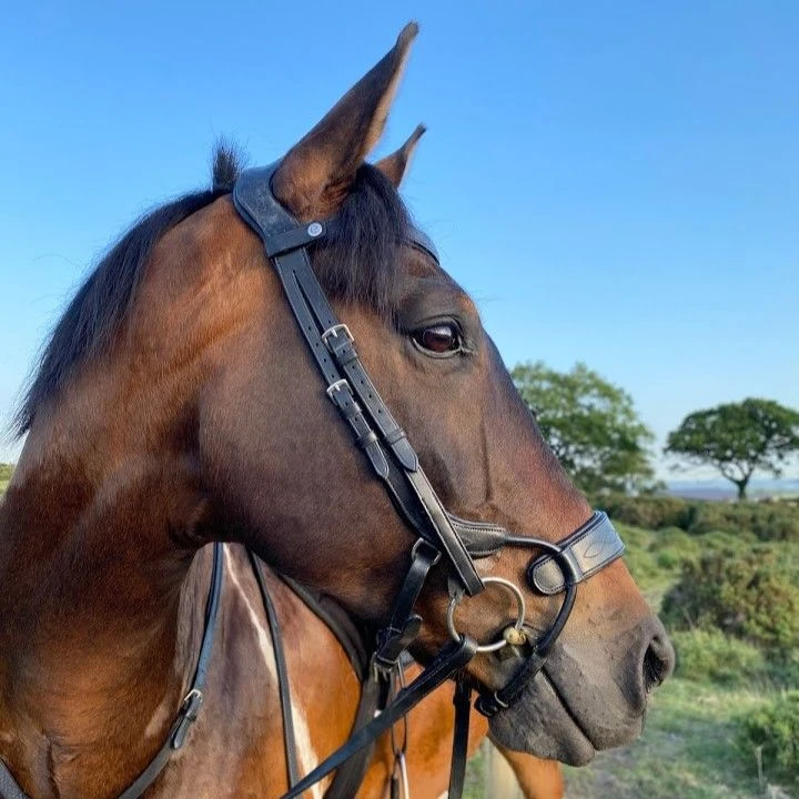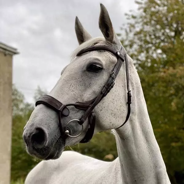 Eco-friendly hypoallergenic leatherwork in a uniquely shaped anatomic bridle designed to minimise pressure and maximise control. Contoured to avoid pressure on the cheeks and facial nerves. The chin strap is set back to avoid pressure on the upper molar teeth. The adjustable bow moulds around the nose of each horses individual shape. The freedom headpiece is designed to alleviate pressure from the nerve sensitive poll area and also through a cut away around the base of the ears. The headpiece is further enhanced by the removeable throat lash siting at the correct angle to relieve pressure under the chin. The bridle is further enhanced by a beautiful dipped browband that is removeable with our signature ‘e’ clasp that feeds through a padded channel.