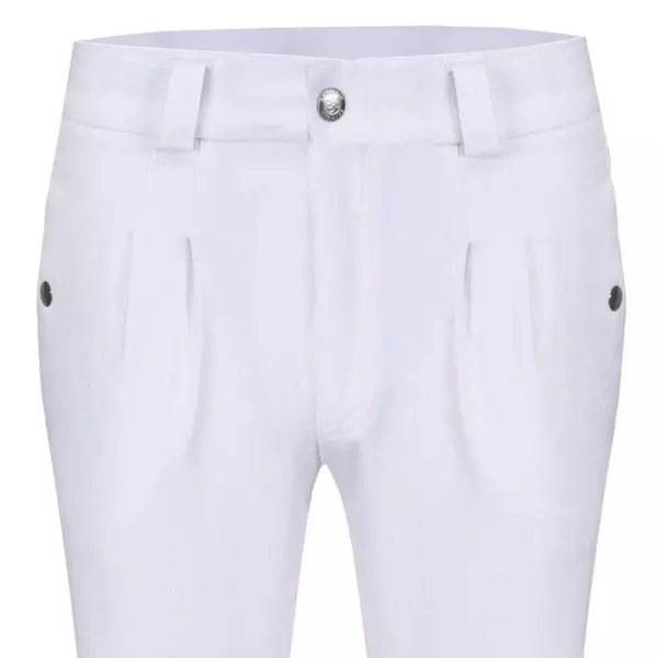 These new Kingham Breeches from Equetech are sure to be a hit with the gents. The offer a superb fit, woven fabric which is hardwearing and at such an affordable price they are great for everyday wear. Features a contoured self fabric seat, Equetech® silicone knee grip, press button pockets, Lycra® panel to cuff, comfort waistband and belt loops. Machine washable. Woven 62% Polyester/ 33% Viscose/ 5% Spandex.