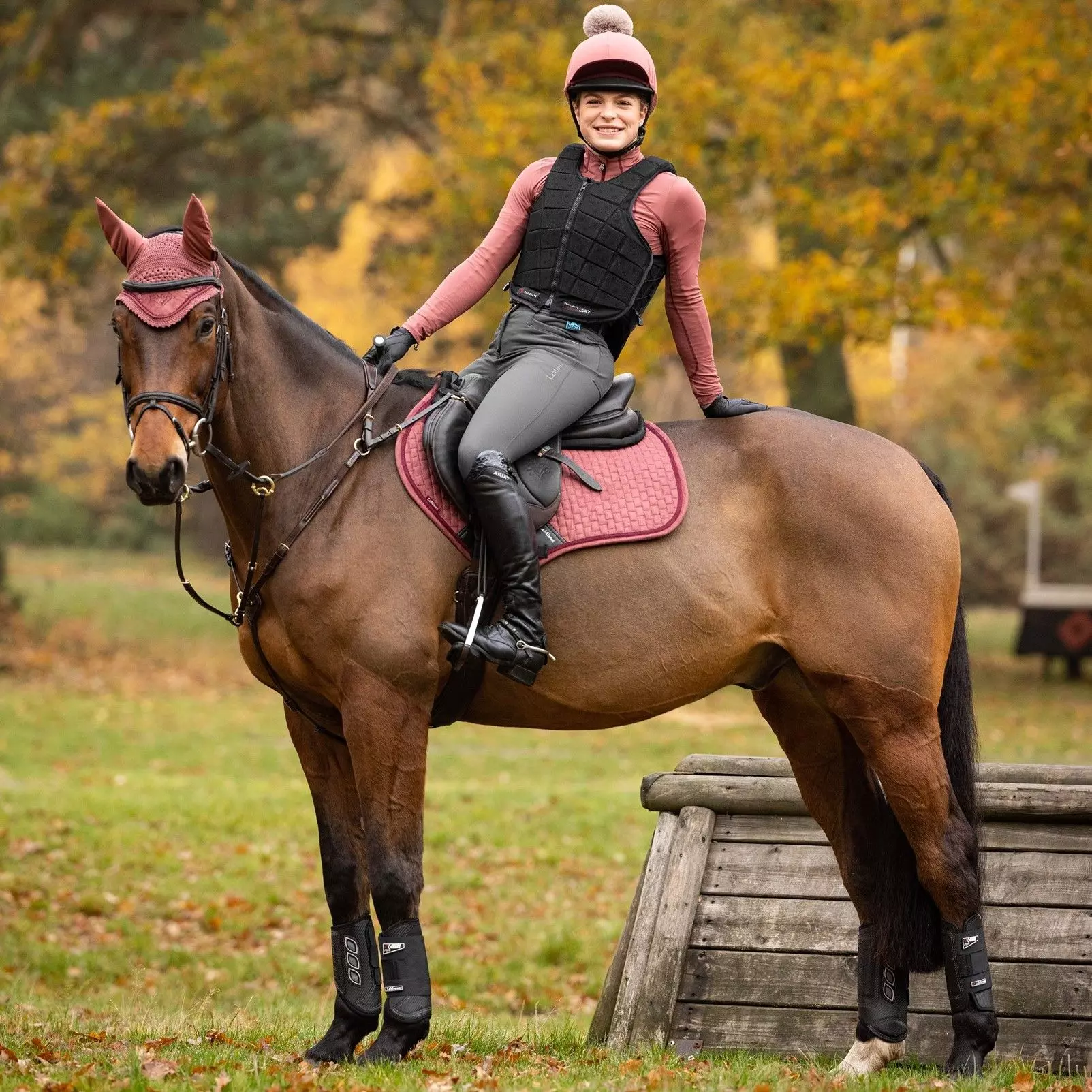 Now with a New Super Soft Suede Binding and New PU Leather Girth Protection area, the classic Close-Contact cut from LeMieux is designed to fit a wide range of more forward cut jumping saddles. Now one of the most iconic jumping pads with its high wither, elasticated D-Ring tabs and swept back profile . These saddle pads offer a very sleek and professional look to anyone’s saddle. The luxurious suede top side and new soft suede binding is complimented by super soft Bamboo lining which absorbs & controls sweat under the saddle and is beautifully comfortable and secure – minimising friction even on sensitive skinned horses. Girth keepers incorporate inner locking loops to offer more girthing options.