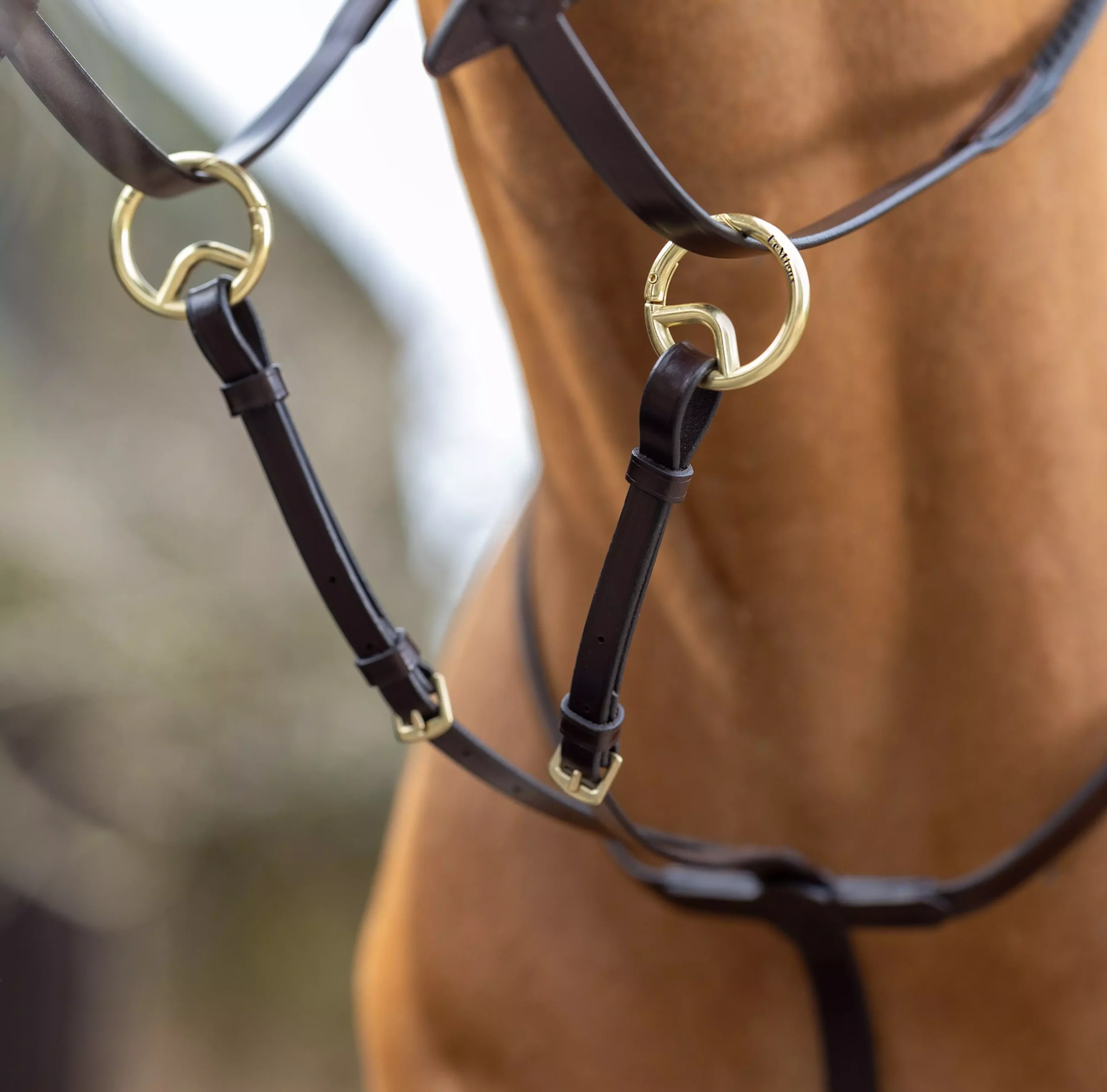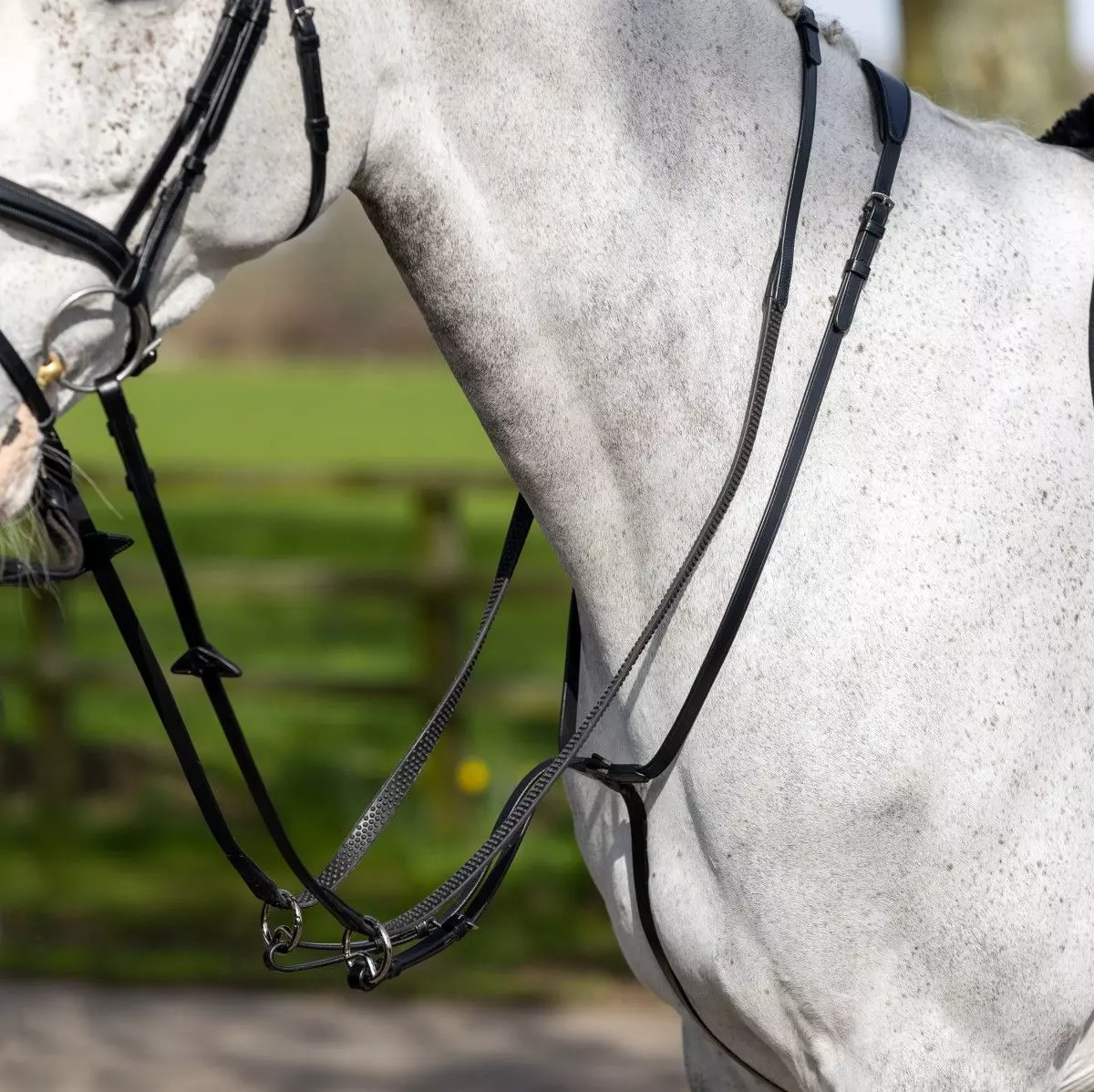 - Custom designed martingale rings clip on and off reins.